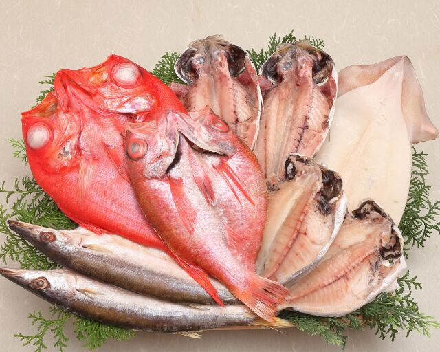 大変高価なのどぐろと、脂の乗った真あじ・かます・えぼ鯛の干物、